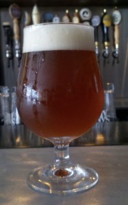 What finalized my decision to walk over was them having Brewery Ommegang’s most recent release Biere D’Hougoumont, a 7.3% ABV biere de garde aged on oak and maple staves on tap. Pouring light amber with an attractive golden hue and a 1.5 finger head, I was definitely excited to dig into this beer. Upon taking a sniff I was drawn in my its tart wheat malt, nutty, lemony, and sweet biscuity malt aroma. Following nicely into the taste, my palate was met with crisp pale malt, sweet breadiness, maple syrup, and a hint of lemon. After letting the beer warm up a bit the maple syrup notes blended quite nicely with the malt profile and some additional lemon and banana notes became apparent in the finish. In terms of the mouthfeel, Biere D’Hougoumont’s malt forwardness contributed a bit of heft along with its alcohol content, but did not prevent me from taking continuous sips as I reveled in its spot on flavor profile. I look forward to picking up a couple bottles of this beer to see how is differs from this on tap version. I should note here that since the bottled version is bottle conditioned, the beer should feature a deeper maturity of flavors; especially as it ages over time. Rating 8/10 (for being so spot on for the style).