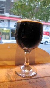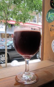 For my last beer of the night I chose one of m my go-to imperial stouts i.e. Founders Imperial stout (released in January). I should note that while I had drank this beer many times after buying a four pack of bottles, this was my first time trying it on tap. It poured opaque jet black in color with a knaki head that quickly dissipated on top of my 80z pour, but left some nice lacing and alcohol legs. Aromas of dark chocolate, espresso coffee, caramel, and a bit of smokiness were joined a hint of nutty toffee (in the background). These notes transitioned well in to the taste with the dark chocolate being met by an interesting blend of espresso coffee and earthy hops at mid palate. In the finish my palate was left with the chocolate and espresso along with notes of cocoa and dark fruits. As I noted in my tasting notes that I wrote while drinking this beer “the blend of flavors is awesome.” True to style this imperial stout was full bodied with moderate carbonation (from being served on tap) and a well hidden high ABV (10.5%). Lastly, in my opinion it was this beer’s slightly dry finish that allowed its flavors to meld together so well and not fatigue my palate as I enjoyed each sip. Rating: 9.5/10