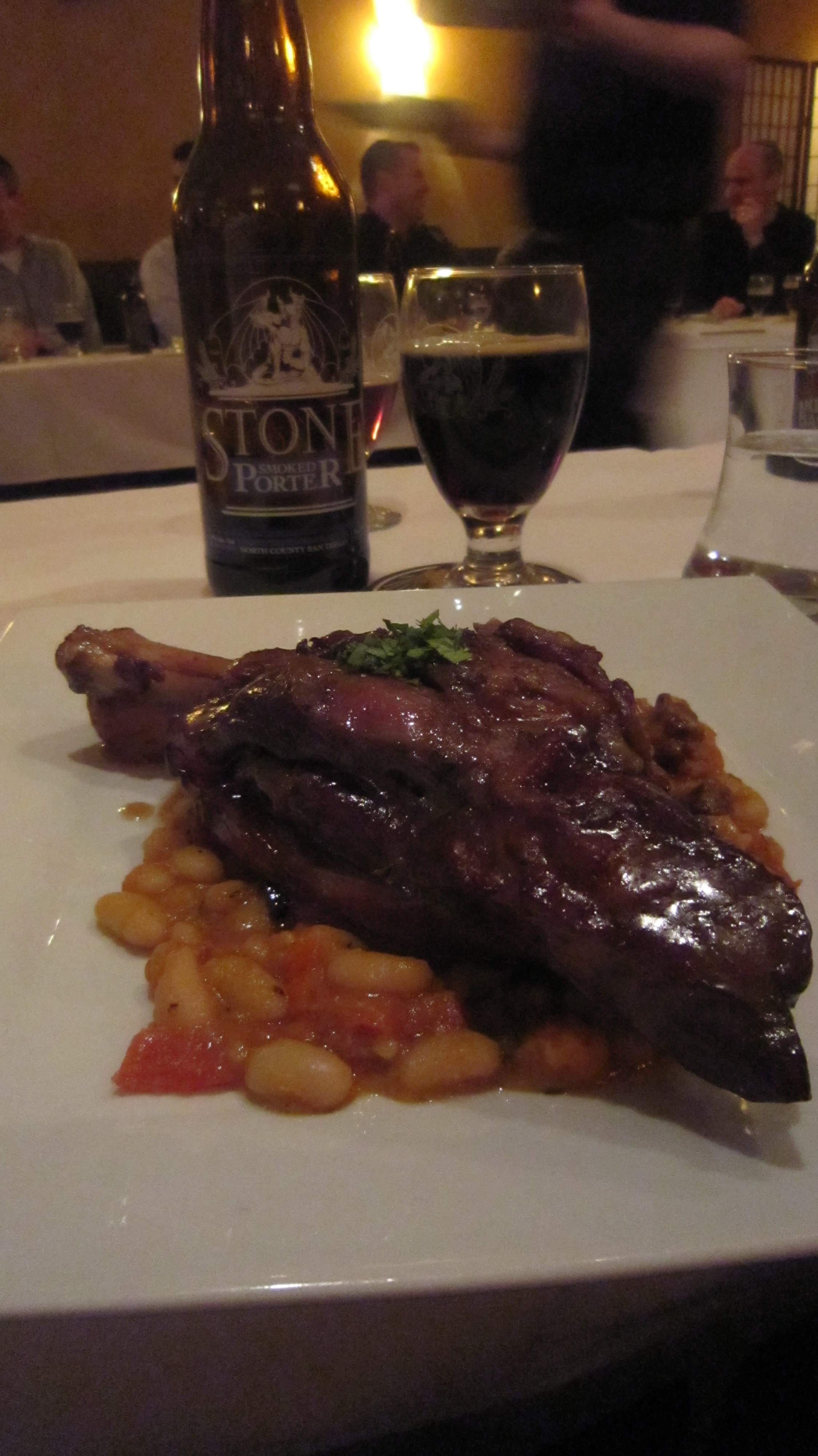 IMG_1504Course Three: Lamb Shank w/ Cannelini beans, rosemary, roasted red peppers, tomato concosse, and lamb sausage Paired w/ Smoked Porter