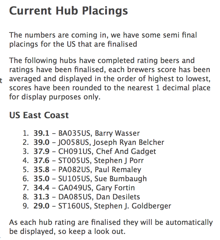 IN OTHER NEWS: I won 1st place in the northeast region (hub) of the Sj Porr Challenge 2014 competition with my Self Righteous Wookey Black Rye IPA. Next Step…The US finals or the Top 12 in the US where I’ll be judging the top 3 beers from the other 3 US regions of the challenge.