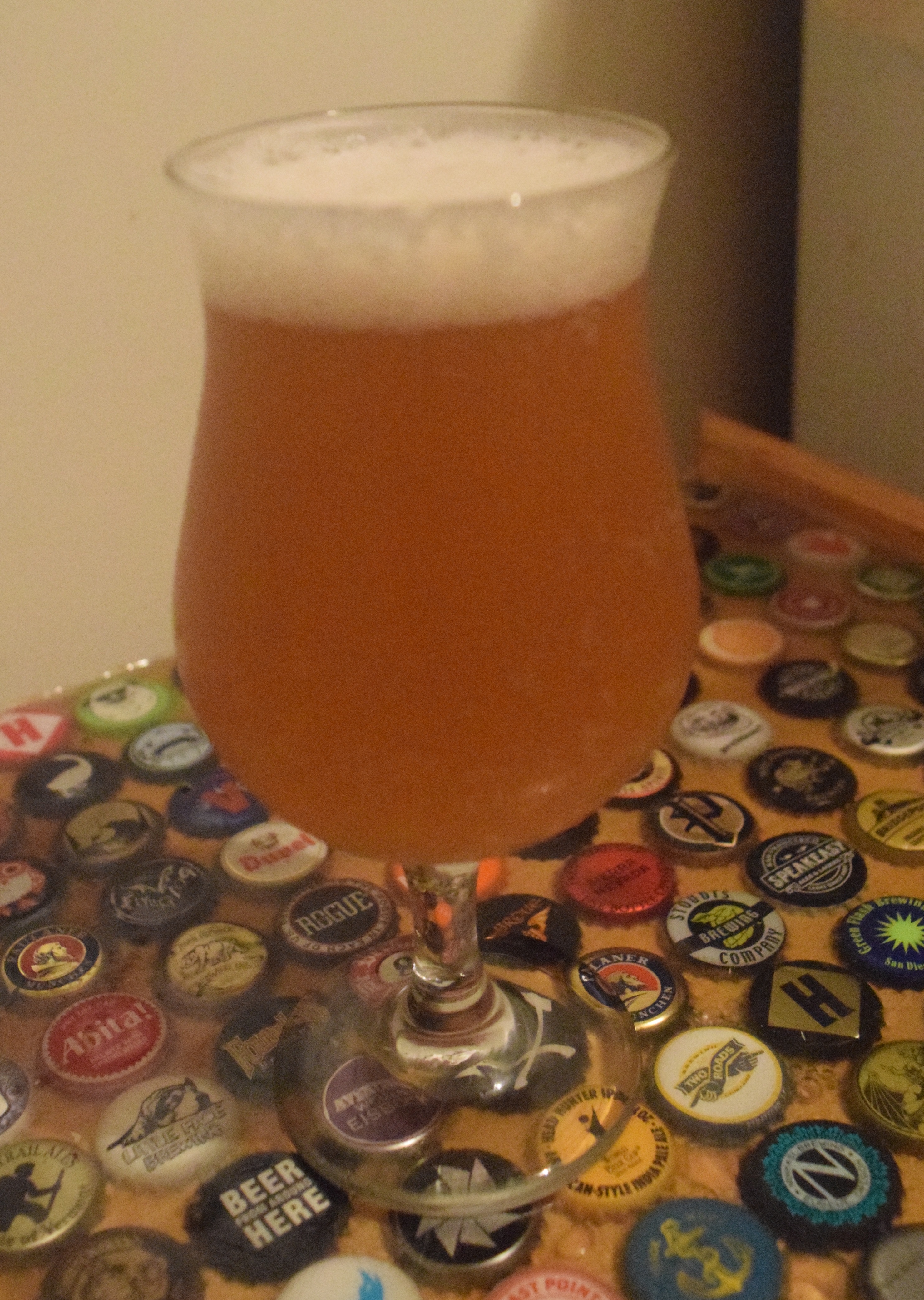 Taste (16/20): Follows the aroma almost seamlessly with the same balance being present throughout. While not as overtly bright and citrusy as other varieties the Mandarina hops add a citrus character that both enhanced and tamed the beer’s yeast character which was quite dominant prior to dry hopping. As a result the saison character (phenolic and herbal spiciness) was present mainly the the finish which lingered on my palate. No off flavors, but a noticeable boozy flavor detracted from my enjoyment at the time of typing these notes.