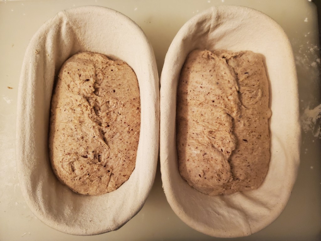 Because I was a bit nervous about whether bulk fermentation was complete, the doughs bench rested for 35 minutes instead of my usual 20-25. I final shaped the red loaves into batards and the yellow loaves into boules. All four loaves were then put in my refrigerator for a 13 hour cold proof. Of note, Melissa’s recipe calls for a 30-60 room temperature proof prior to putting the loaves in for their cold proof, but I chose to stick with my usual process of putting them straight in the refrigerator.