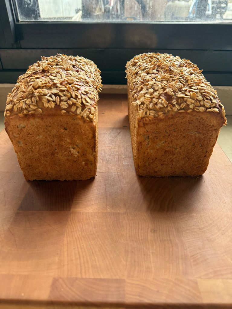 Process: Mix the flour, water, salt, and starter together. Then pour in the sugar and oil and mix in. Ferment according to your established process and then shape as you would batard (oblong) loaves . Eggwash: I brush on one layer of eggwash before scoring and then another layer after removing the steam pan. Put a pan of hot water under the loaves for the first 25 minutes. Bake at 375F for 45-50 minutes (because my oven is in celsius I bake at 185C with fan) or until the internal temperature of each loaf reach 200-205F (93-95C). Let cool in pan for 5 minutes and then transfer to a cool rack to fully cool before slicing. If stored well (I wrap my loaves in aluminum foil and then put them in a zip tock bag).